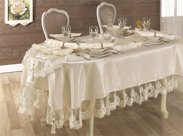 • tablecloths made of cotton, linen, velvet. They can have a simple design for everyday use or an intricate one, suitable for receiving dear guests;